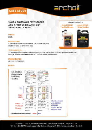 BACKGROUND: This well maintained vehicle using Archoil additives was in for a routine MOT. This includes an emissions test and we were keen to see the results after using the Archoil Products.