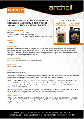 The Archoil products do exactly what they say on the tin, aid performance whilst keeping the engine and fuelling systems in great shape.