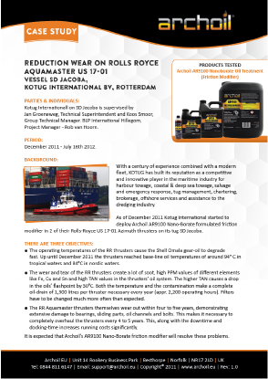 REDUCTION WEAR ON ROLLS ROYCE AQUAMASTER US 17-01 VESSEL SD JACOBA, KOTUG INTERNATIONAL BV, ROTTERDAM